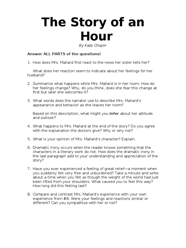 22+ The Story Of An Hour Questions And Answers Pdf